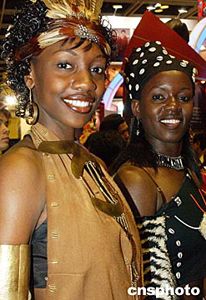 肯尼亞航空公司身穿民族服飾的漂亮空姐在展會(huì)上為公司造勢(shì)。作者:錢(qián)興強(qiáng)