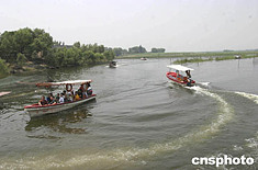 二零零四年春夏以來(lái),素有“華北明珠”之稱(chēng)的河北白洋淀不斷引外水?dāng)U大水勢(shì),發(fā)展水上旅游。中新社記者:史利