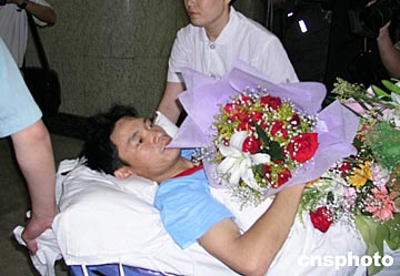 中國政府派出接送在阿遭襲受傷工人的專機,六月十四日晚十點五十分抵達山東省城濟南國際機場。當兩位輕傷員走下飛機玄梯時,受到了在機場等候多時的中鐵十四局員工的熱烈歡迎。歡迎人群高聲呼喚著“歡迎回家!”這親切的鄉(xiāng)音令傷員們激動得熱淚盈眶。作者:胡洪林