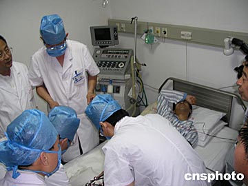 山東省立醫(yī)院專家組的專家在特護病房立即為剛剛入院的傷員檢查傷勢。作者:胡洪林