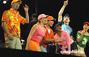 美東時間六月十四日晚,一萬多人來到紐約中城的布萊恩特公園觀看由百老匯明星們演出的第三屆《星光下的百老匯》歌舞晚會,這場演出標志著紐約夏日文娛季節(jié)的開始。圖為百老匯歌星們高唱《棒球混響曲》。作者:陳建