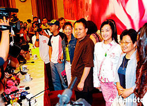 由中國著名電影明星劉曉慶(右二)加盟的電影《春花開》,6月16日日在北京人民大會堂舉行開機(jī)儀式。這部電影由中國第六代電影導(dǎo)演代表之一的劉冰鑒(右三)執(zhí)導(dǎo),他拍攝的《硯床》、《男男女女》等電影作品在海外電影節(jié)上多次獲獎(jiǎng)。中新社記者:王麗南