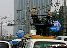 北京電力搶修工人六月周末在街頭排除故障。中國國家電網(wǎng)公司六月舉行的迎峰度夏安全生產(chǎn)電視電話會議決定,目前電煤供應(yīng)很不樂觀,很可能導(dǎo)致機(jī)組停運(yùn)。電監(jiān)會組織制定的《電網(wǎng)大面積停電事件應(yīng)急預(yù)案》已經(jīng)提交給國務(wù)院辦公廳報批。中新社記者:賈國榮