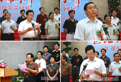 中國(guó)新聞社副總編輯田惠明、中共宜昌市委副書(shū)記文成國(guó)、市委常委、宣傳部長(zhǎng)趙舉海、市人大副主任肖道根、市政府副市長(zhǎng)廖達(dá)鳳、市政協(xié)主席李泉、解放軍宜昌市軍分區(qū)司令員張建國(guó)、三峽大學(xué)、武警二支隊(duì)負(fù)責(zé)人的代表、中國(guó)新聞社湖北分社社長(zhǎng)章敦華等出席首展儀式并且為首展剪彩。首展儀式由趙舉海主持,文成國(guó)、田惠明和各界代表先后在儀式上發(fā)表講話。