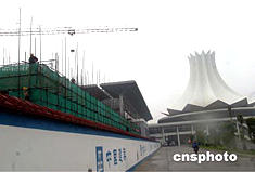 廣西南寧國(guó)際會(huì)展中心是每年一度中國(guó)-東盟博覽會(huì)唯一指定場(chǎng)館,會(huì)展中心位于桂海高速公路南寧出口處,中心拱頂猶如一朵朱槿花(南寧市市花),盛開(kāi)在南寧民歌廣場(chǎng)旁。從二零零四年起,中國(guó)-東盟博覽會(huì)每年十一月都將在廣西南寧舉辦。南寧國(guó)際會(huì)展中心二期工程是南寧市迎接中國(guó)-東盟博覽會(huì)的重大建設(shè)項(xiàng)目之一,計(jì)劃于二零零四年年內(nèi)完成。圖為正在加緊建設(shè)中的南寧國(guó)際會(huì)展中心二期工程。中新社記者:張勤