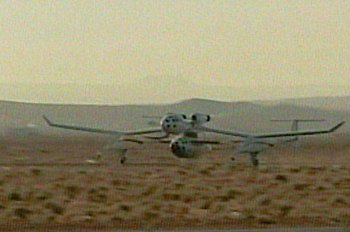 美國東部時間21日9時45分(北京時間21日21時45分)左右,搭載著“太空飛船一號”的一架噴氣式飛機“白色騎士”從跑道上起飛。約1小時后,“白色騎士”飛抵15公里高空,“太空飛船一號”與之脫離。飛船的火箭發(fā)動機點火加速,使之飛出大氣層,抵達約100公里高度的亞軌道,然后落回地球。