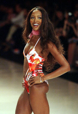 英國(guó)超級(jí)名模奧米·坎貝爾著Amir Slama設(shè)計(jì)的比基尼秀身材。