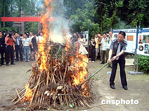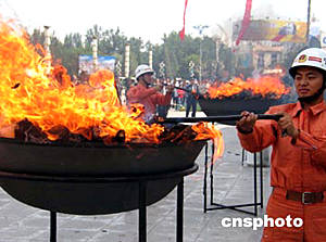 中新網(wǎng)6月26日電 今天是國際禁毒日,聯(lián)合國毒品監(jiān)督機構(gòu)去年3月公布的一份年度報告指出,目前全球經(jīng)常性和偶爾性的毒品使用者已達(dá)兩億之多;其中1.63億人吸食大麻,3400萬人食用安非它明,1400萬人食用可卡因,1500萬人服用鴉片制劑,800萬人食用搖頭丸。全球毒品每年銷售總額8000億至1萬億美元,占全球貿(mào)易總額的10%,這一數(shù)字高于石油和天然氣工業(yè)的收入,與全球軍火貿(mào)易額相差無幾。