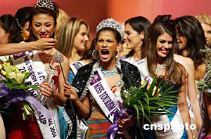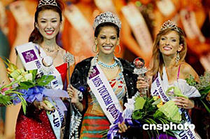 6月29日,令人矚目的2004國(guó)際旅游小姐冠軍總決賽在浙江杭州落下帷幕。印度選手ZABINA ABDUL RASHID KHAN,(中)從來(lái)自51個(gè)國(guó)家的53位旅游形象大使中脫穎而出獲得冠軍。德國(guó)選手JOHNALENA KWASOW獲得亞軍,中國(guó)選手鈔俊男(左)也發(fā)揮了較好的水平,在強(qiáng)手如林的競(jìng)爭(zhēng)中獲得第三名。作者:饒強(qiáng)
