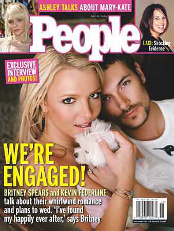 凱文費(fèi)德藍(lán)恩對(duì)”人物”雜志表示,他認(rèn)為求婚應(yīng)該是男方開口才對(duì),他拒絕布蘭妮求婚要求的幾分鐘之后,便換成他詢問布蘭妮”是否愿意嫁給我”,布蘭妮馬上就答應(yīng)了。