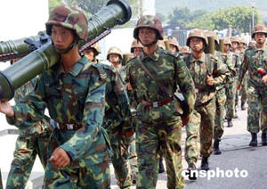 各開放軍營里的兵器展示項目,十分吸引香港市民尤其是青少年,各種自動步槍、榴彈發(fā)射器、迫擊炮、重機槍和反坦克火箭,不僅可以看,還可以在官兵的指導下動手操作。官兵們的“緊急出動演練”、擒拿格斗訓練、儀仗隊表演,讓參觀的市民們大贊“好威風”。