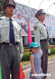 今日是香港回歸七周年紀念日,大批香港市民冒著高溫酷暑,踴躍前往解放軍駐港部隊軍營參觀,在赤柱、昂船洲、石崗三個開放的軍營里,充滿了市民對解放軍威武文明之師的贊譽,以及軍民聯歡的笑語。