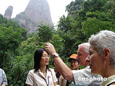 七月五日,廣東韶關市政府為中國丹霞山世界地質公園舉行隆重的揭碑開園儀式后,聯(lián)合國官員在丹霞山陽元山景區(qū)參觀考察。作者:馮昶