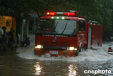 中新網7月10日電(記者 聞育旻) 10日下午4時許,北京上空電閃雷鳴,突遭瓢潑大雨,北京城區(qū)部分街道水深及膝蓋,部分車輛因發(fā)動機進水而癱瘓于路中,城區(qū)交通嚴重擁堵。