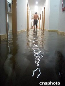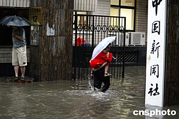 中國新聞社的地下室被淹,大廈停電。中新社記者:任晨鳴