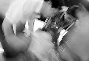 地鐵工作人員盛麗敏(中)敲碎玻璃按緊急停車按鈕,手受了傷。
