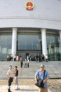 “一二·二三”特大井噴事故案今天上午九時三十分在重慶市第二中級人民法院開庭審理。圖為重慶市第二中級人民法院剛剛落成的大樓,今天的審判庭就設在這里。作者:鄒輝