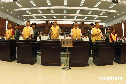 “一二·二三”中石油川東北氣礦井噴特大安全事故七月十四日在重慶市第二中級(jí)人民法院開(kāi)庭審理,事故中涉嫌重大責(zé)任事故罪的六名犯罪嫌疑人接受公開(kāi)審判。作者:鄒輝