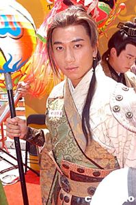 藝員林峰7月15日在香港以古裝造型出席無線電視古裝武俠劇《大唐雙龍傳》宣傳活動(dòng),林峰在新劇飾演一名小混混,憑著初生之犢的勇氣,在亂世中力爭(zhēng)上游。作者:鄧慶樂