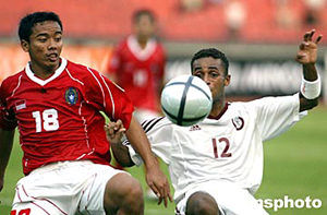 印尼隊(duì)與卡塔爾在北京賽區(qū)的比賽是A組的第二場(chǎng)小組賽,卡塔爾隊(duì)在比賽之初掌握了場(chǎng)上主動(dòng),在整場(chǎng)比賽中,印尼得到的機(jī)會(huì)雖然沒有卡塔爾多,但他們進(jìn)攻的效率顯然更高。第二十五分鐘,印尼左前衛(wèi)布迪利用對(duì)方失誤在門前起腳捅射破門,首先為印尼隊(duì)取得領(lǐng)先。下半場(chǎng)開賽三分鐘,印尼隊(duì)在前場(chǎng)搶斷成功,在禁區(qū)右路外圍距球門二十五米處,波納里奧打出一記漂亮的“世界波”,將場(chǎng)上比分改寫為二比零。