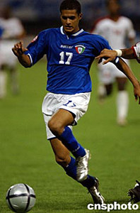 第二場比賽科威特戰(zhàn)阿聯(lián)酋。科隊(duì)隊(duì)長巴沙爾在第24分鐘先拔頭籌并在第39分鐘制造點(diǎn)球,穆特瓦一蹴而就擴(kuò)大比分。上半場結(jié)束前,阿聯(lián)酋后衛(wèi)賽義德烏龍球送贈大禮。