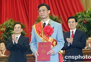 中新社北京七月二十日電(記者邢利宇)中國廣州呼吸疾病研究所所長、中國工程院院士鐘南山在今天開幕的“第七屆全國歸僑僑眷代表大會”上當(dāng)選“僑界十杰”,并從國家主席胡錦濤手中接過“僑界十杰”證書。