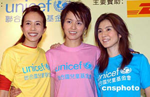 聯合國兒童基金會“教育大使”楊采妮7月22日在香港出席聯合國兒童基金會舉行之《寧夏童心夢飛行》記者會,楊采妮與梁詠琪、莫文蔚將攜手于八月前往內地寧夏地區(qū)親善探訪當地兒童。聯合國兒童基金會香港委員會主席馮慶彪(右一)、副主席陳方安生(左二)與三位大使聯同贊助商舉行儀式,并呼吁各界踴躍捐款。作者:鄧慶樂