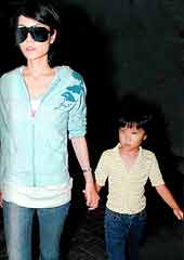 王菲顯然聽到,一臉尷尬地拖著童童到頭等艙休息室等候。記者看到她一臉疲累,坐在椅子上閉目養(yǎng)神。下午5時(shí)15分,登機(jī)廣播傳來(lái),王菲立即起身帶女兒到柜臺(tái)辦手續(xù)。
