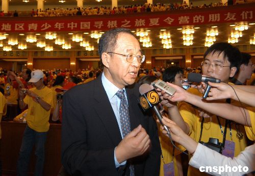 七月二十七日上午,“二零零四年海外華裔及港澳地區(qū)青少年中國尋根之旅夏令營”開營儀式在北京人民大會堂隆重舉行,來自三十六個國家和港澳地區(qū)的近四千名青少年參加了開營式。國務(wù)院僑辦副主任劉澤彭在開營式后成為媒體采訪焦點。作者:徐曦弋