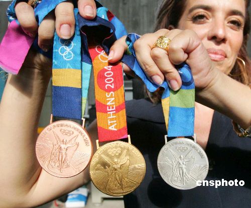 7月26日,2004年雅典奧運會的獎牌揭開神秘面紗。據(jù)悉,目前已經(jīng)約有3000枚獎牌投入制造。Ic/cnsphoto 攝