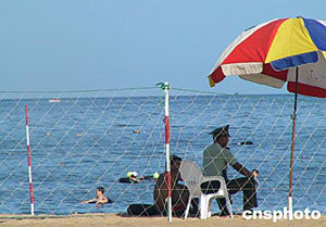 七月下旬,中國各地迎來了一年中最炎熱的日子。在中國北方著名的避暑勝地北戴河,一名武警戰(zhàn)士正在海濱浴場執(zhí)勤。北戴河曾經(jīng)是中國高層領導夏季辦公和休假的地方,這里一度被輿論譽為“夏都”,不過自去年開始,中央領導人和中央機關干部夏季不再到這里辦公。作者:齊彬