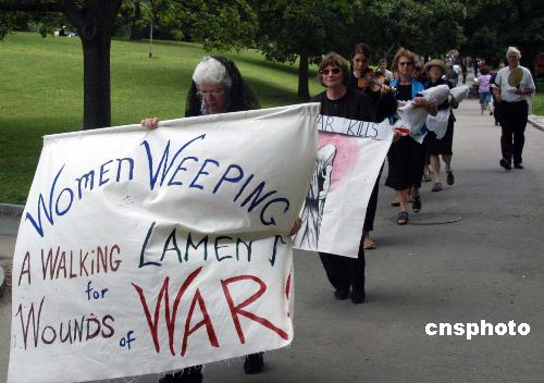 美國(guó)民主黨全國(guó)大會(huì)舉辦之際,波士頓街頭常有各種訴求的游行示威。這是一個(gè)名為“婦女哭泣”的行走活動(dòng)穿過(guò)市中心的波士頓公共公園,她們穿黑衣、抱著襁褓,表達(dá)對(duì)戰(zhàn)爭(zhēng)摧殘生命的不滿(mǎn)。作者:余東暉