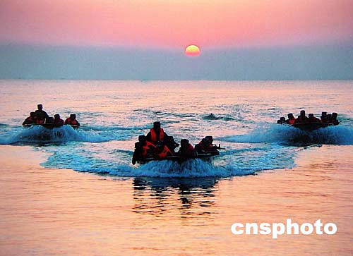中國(guó)海軍精銳兩棲部隊(duì)今夏在南海島嶼演練沖鋒舟快速搶灘,以小股精兵出奇制勝。作者:龍運(yùn)河