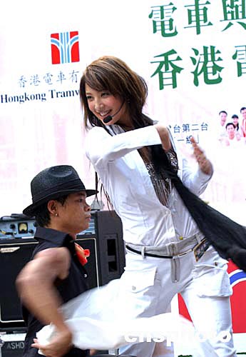 香港7月31日在時代廣場舉行“電車與你百載同行”百周年派對暨頒獎典禮活動﹐歌星鄭希怡在儀式上獻(xiàn)歌。作者:趙振清