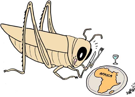 中新網(wǎng)7月31日電 蝗蟲今年在非洲大陸肆虐,嚴(yán)重影響了非洲的農(nóng)業(yè)生產(chǎn)。7月底,來自非洲馬格里布地區(qū)和西非荒漠草原地區(qū)的非洲9國的農(nóng)業(yè)部長在阿爾及爾集會,并制定了緊急掃蝗方案,要堅決擊退貪吃蝗軍的進(jìn)攻。(來源:法《國際報刊》)