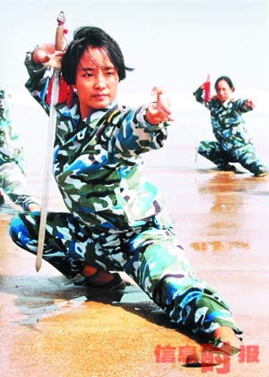 1995年,剛剛成立的中國(guó)海軍女子陸戰(zhàn)隊(duì)擔(dān)負(fù)起了迎接美國(guó)海軍陸戰(zhàn)隊(duì)司令凱利的任務(wù),那是她們首次亮相于外軍面前。在那次表演中,女子陸戰(zhàn)隊(duì)以精湛的技藝、過(guò)硬的素質(zhì)、優(yōu)良的作風(fēng)使得來(lái)自大洋彼岸的四星上將翹起大拇指連聲稱(chēng)贊:“中國(guó)女兵,OK!”