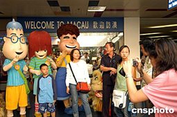 八月一日,三位澳門“旅游大使”在外港新澳碼頭喜迎賓客,令每一位剛剛踏入澳門的游客有一種賓至如歸的感覺,他們紛紛開心地和這幾位親善大使合影留念。作者:梁永強