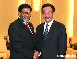 吳邦國說,中巴是傳統(tǒng)友好鄰邦,兩國人民之間的友好交往源遠流長。建交五十多年來,無論國際風(fēng)云如何變幻,中巴關(guān)系不斷深化和發(fā)展,各方面合作全面展開。近年來,中巴高層互訪頻繁,在國際事務(wù)中相互支持。中國感謝巴方在臺灣、西藏、人權(quán)等涉及中國領(lǐng)土、主權(quán)等重大問題上所給予的一貫的堅定支持。
