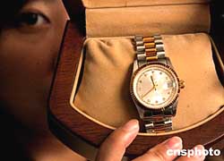 二○○四年八月二十二日是鄧小平誕辰一百周年,上海有關(guān)部門特制鑲嵌鄧小平純鉑金頭像的珍藏紀(jì)念手表9999塊,以示紀(jì)念。八月三日,該機構(gòu)向中國國家博物館捐贈標(biāo)號為001號的鄧小平紀(jì)念手表,該表機芯為瑞士單歷全自動鍍金,表圈、表帶中柱鍍厚金,并配以奧地利水晶鉆石。中新社記者:王麗南