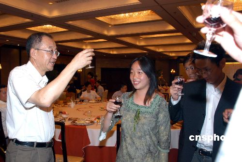 國(guó)務(wù)院僑辦和上海市僑辦今天聯(lián)合舉行宴會(huì)歡迎參加夏令營(yíng)的海外優(yōu)秀華裔青年。劉澤彭向身邊的帶隊(duì)人員詢問(wèn)了夏令營(yíng)日間活動(dòng)的有關(guān)情況,席間大家談笑風(fēng)生。