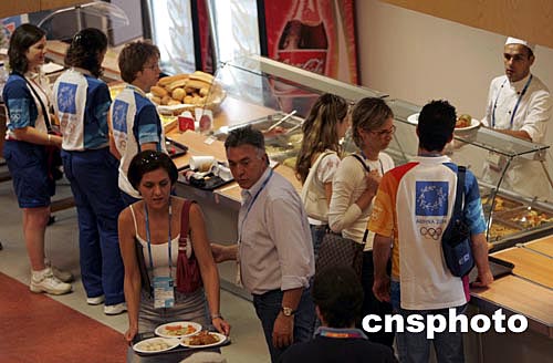 在雅典奧運(yùn)會(huì)主新聞中心內(nèi),開(kāi)設(shè)眾多風(fēng)味的美食供世界各地的記者選擇,只不過(guò)都是“西餐”,而沒(méi)有中餐等東方風(fēng)味飲食。中新社記者:任晨鳴