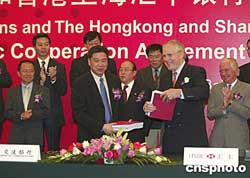 匯豐銀行八月六日在北京與交通銀行簽署戰(zhàn)略合作協(xié)議,匯豐銀行以香港上海匯豐銀行名義入股交通銀行,投資折合約17.47億美元。這是迄今為止國際知名金融機(jī)構(gòu)入股中國商業(yè)銀行的最大宗交易。匯豐集團(tuán)主席龐約翰爵士(右一)、香港上海匯豐銀行主席艾爾敦(右二)、中國人民銀行行長(zhǎng)周小川、交通銀行董事長(zhǎng)蔣超良、交通銀行行長(zhǎng)張建國(右五)、全國社會(huì)保障基金理事會(huì)理事長(zhǎng)項(xiàng)懷誠(右四)等出席簽字儀式。中新社記者:滿會(huì)喬