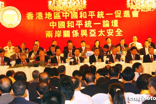 本次論壇由香港地區(qū)中國(guó)和平統(tǒng)一促進(jìn)會(huì)舉辦,主題是“兩岸關(guān)系與亞太安全”,議題包括中國(guó)現(xiàn)代化建設(shè)與國(guó)家統(tǒng)一大業(yè)的關(guān)系、“和平統(tǒng)一”方針最大的誠(chéng)意和包容性、兩岸“三通”前景及對(duì)港臺(tái)關(guān)系的影響、解析臺(tái)灣問(wèn)題與中美關(guān)系、“臺(tái)獨(dú)”勢(shì)力對(duì)亞太地區(qū)和平穩(wěn)定的影響、世界華人如何推動(dòng)中國(guó)和平統(tǒng)一等十方面。來(lái)自兩岸、港澳及世界各地十七個(gè)國(guó)家的中國(guó)和統(tǒng)會(huì)組織代表,和僑領(lǐng)、專家、學(xué)者等約二百人在兩天的會(huì)期中,對(duì)當(dāng)前兩岸形勢(shì)各抒己見(jiàn),共謀中國(guó)和平統(tǒng)一之道。
