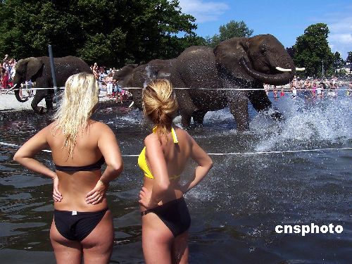 丹麥最近遭遇持續(xù)高溫天氣,動物園中的大象難耐酷熱,飼養(yǎng)員帶領它們來到河中沖水納涼,引來許多好奇的人們駐足觀看。作者:Ic/cnsphoto