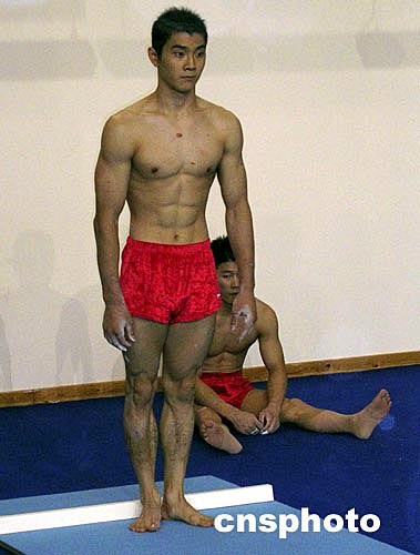 當?shù)貢r間8月7日下午,世界冠軍--中國男子體操隊的主力選手邢傲偉等在雅典訓練,備戰(zhàn)即將開始的比賽。作者:沈晨