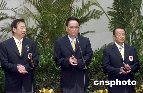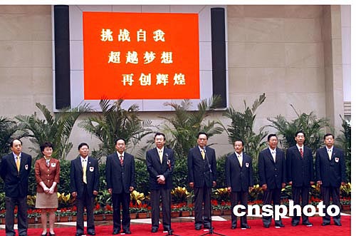 李志堅、袁偉民、李富榮出席歡送奧運軍團儀式八月八日,由中國國家體育總局局長、中國奧委會主席袁偉民擔任團長的中國體育代表團一行二百六十七人,乘專機起程赴雅典參加八月十三日開幕的第二十八屆奧運會。國家體育總局、中國奧委會為代表團舉行了送行儀式。中新社記者:武仲林