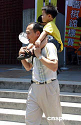 八月八日是臺(tái)灣父親節(jié)。圖為一名父親帶著小兒子,前往臺(tái)灣師范大學(xué)體育館為正在參加圍棋比賽的長(zhǎng)子加油。作者:董會(huì)峰