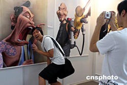 八月八日,一位漫友與漫畫作品零距離接觸。北京動漫嘉年華在中國軍事博物館正式出演,來自日本、韓國、西班牙、法國、我國臺灣地區(qū)和香港地區(qū)及內(nèi)地三十多位動漫大師名家?guī)砹艘磺Ф喾芳炎鳌T诩文耆A的中心舞臺上演了首屆全國COSPALY炫風(fēng)星秀大賽復(fù)賽和決賽,來自全國各地五大賽區(qū)COSPALY高手決戰(zhàn)京城,同時還有來自日本、韓國、馬來西亞等地的COSPALY冠軍同臺表演助興。作者:韓藝冰