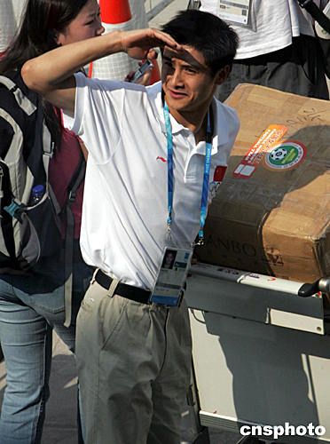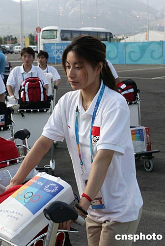 當?shù)貢r間8月8日下午,運載中國奧運軍團的中國國際航空公司波音747專機平安飛抵雅典機場,團長袁偉民等受到組委會官員歡迎。