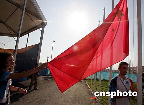 中新社雅典八月九日電 當(dāng)?shù)貢r間今天上午9點(北京時間14點),伴隨著雄壯的國歌聲,中華人民共和國國旗將在雅典奧運村冉冉升起,中國代表團將舉行入住奧運村升旗儀式。